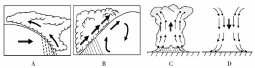 A.上冷下热 B.上热下冷 C.垂直气压差异 D.大气垂直方向上密度不均