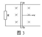 4、如图3示,金属杆ab以恒定的速率v在光滑的平行导轨上向右滑行,设整个电路中总电阻为R(恒定不变),整个装置置于垂直于纸面向里的匀强磁场中,下列说法不正确的是 ( )