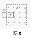 6、如图5所示,两个门形金属线框放在光滑水平面上,虚线范围内是一个匀强磁场.若线框A向B运动,则能进入B(有接触而无摩擦),当A、B接触的短暂时间内A的运动情况是 ( )