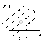 与x轴夹角为30°的匀强磁场磁感强度为B(图12),一根长l的金属棒在此磁场中运动时始终与z轴平行(即与xoy平面垂直),以下哪些情况可在棒中得到方向相同、大小为Blv的电动势 ( )