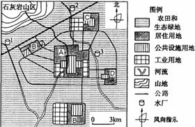 (2)该城市规划在B处建成以水泥生产为主的建材生产基地,你认为是否合理,并说明理由。(4分)