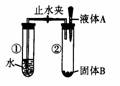 如图所示,打开止水夹,将液体A滴入试管②中,与固体B接触。若试管①中的导管口没有气泡产生,则液体A和固体B的组合可能是下列中的 ( )