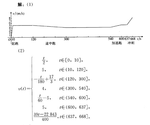 (1)起跑后,匀加速,10秒后达到每秒5米的速度,然后匀速跑到2分;