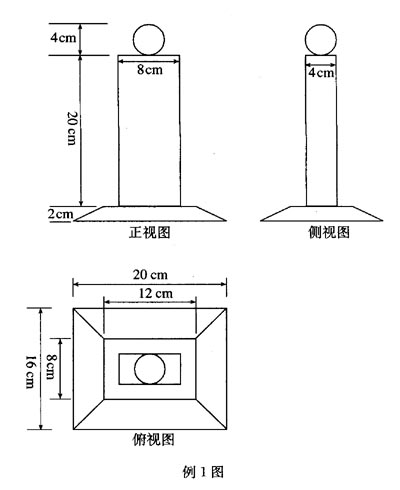 例1 如图这是一个奖杯的三视图,请你画出它的直观图,并求出这个奖杯的体积。