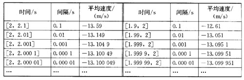 由此可以看出,当时间间隔越来越小时,平均速度趋于一个常数,这一常数(13.1)就可作为该运动员在2秒时的速度。