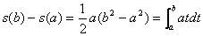 ,也就是s(t)在t=a到t=b之间位置的总变化。于是,我们可得到以下结论:
