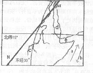7、若图中晨昏线为d海域盐度较高季节时的情形,且晨昏线与东经30o经线夹角为19o,此时下列叙述正确的是