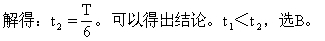 错解三:因为这是一个变加速运动问题,不能用匀速运动或匀变速运动规律求解,因而无法判断t1和t2的大小关系,所以选D。