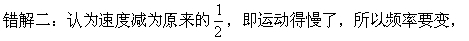 错解二中关于频率不变的判断是正确的,错误出现在后半句的结论上。判断只从能量不变去看,当E总不变时,EP= mgh,m变大了,h一定变小。说明有些同学考虑问题还是不够全面。