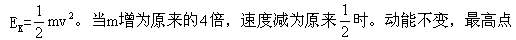 错解三:认为频率要改变,理由同错解二。而关于振幅的改变与否,除了错解一中所示理由外,即总能量不变,而因为重力势能EP= mgh,EP不变,m变为原来的4倍,h一定变小了,即上摆到最高点的高度下降了,所以振幅要改变,应选D。