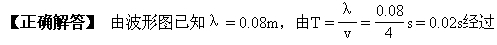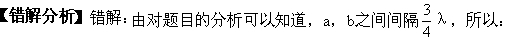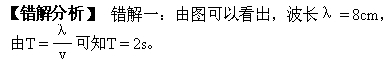 错解一、错解二没有重视单位的一致性,在此题中波长从图中只能得出λ=8cm,而波速给出的却是国际单位4m/s。因此,求周期时,应先将波长的单位统一到国际单位制上来。