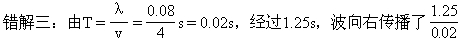 错解三虽然计算对了,但是,在波向前(沿x轴正方向)传播了62.5个波长时的波形,应是在原来的波形基础上向x正方扩展62.5个波长。