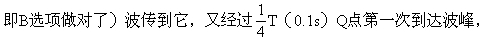 错解二:质点Q(x=9m),经过0.4s(此处用了正确的周期结果