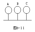 例12 三个绝缘的不带电的相同的金属球A,B,C靠在一起,如图8-11所示,再将一个带正电的物体从左边靠近A球,并固定好,再依次拿走C球、B球、A球,问:这三个金属球各带什么电?并比较它们带电量的多少。
