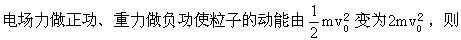带电粒子在电场中运动,一般不考虑带电粒子的重力,则粒子在竖直方向将保持有速度v0,粒子通过B点时不可能有与电场方向一致的2v0,根据粒子有沿场强方向的速度2v0,则必是重力作用使竖直向上的速度变为零。如一定不考虑粒子重力,这只有在电场无限大,带电粒子受电场力的作用,在电场方向上的速度相比可忽略不计的极限状态,且速度沿电场方向才能成立。而本题中v0与vB相比不能忽略不计,因此本题应考虑带电粒子的重力。
