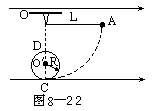 开始时,摆球在合力F的作用下沿力的方向作匀加速直线运动,从A点运动到B点,由图8-23可知,△AOB为等边三角形,则摆球从A到B,在等效力场中,由能量守恒定律得: