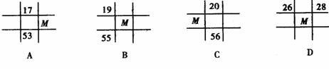下列各图为元素周期表的一部分,表中的数字为原子序数,其中M为37的是 ( )