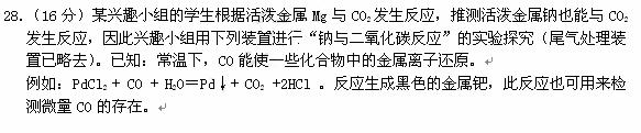 ②若装置F中有黑色沉淀生成,装置D中只生成一种固体物质,取少量该固体与盐酸反应后,也有能使澄清石灰水变浑浊的气体放出,则钠与二氧化碳反应的化学方程式(需注明正确的反应条件)是____________________________________________________________。