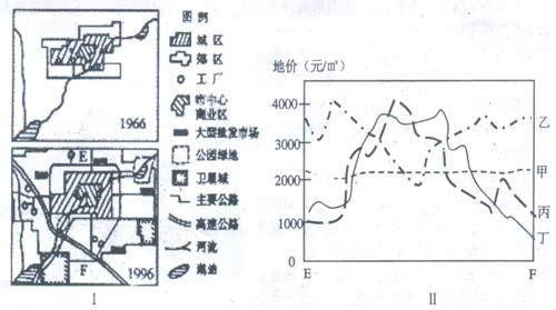 26.某房地产商欲开发图I中EF沿线房地产,预先调查了沿线地价,图II中正确反映EF沿线地价变化的曲线是