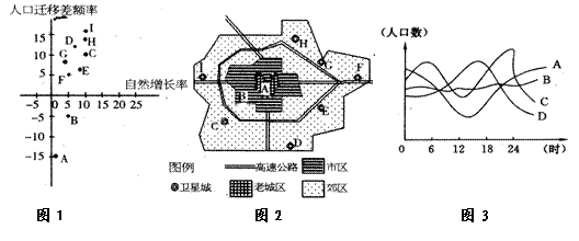 (3)A是该城的中心商务区,图3中能反映A区人口日变化特点的是 ___曲线。