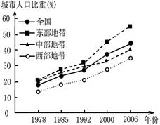 (1)读以上两图,分析我国改革开放以来城市化进程的主要特点。