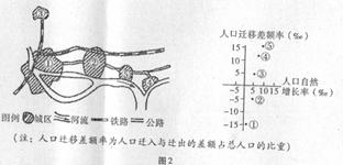 14.由图2可以看出该市③区域的人口增长率约为( )