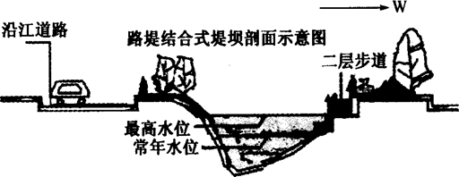 (江苏省白塔中学2010届高三学情调研考试)读我国某城市自然河道路堤坝剖面图,回答2-4题。