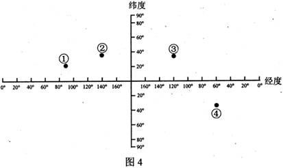 图4中的①到④地表示世界四个著名工业和农业生产发达地区,读图回答10-11题。