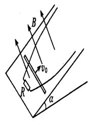 20.如右图所示,光滑曲线导轨足够长,固定在绝缘斜面上,匀强磁场B垂直斜面向上,一导体棒从某处以初速度