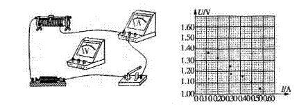 (3)在U-I图中已画出七组实验数据所对应的坐标点,请根据这些点作出U-I并由图线求出:E=________V,r=_________![]()
