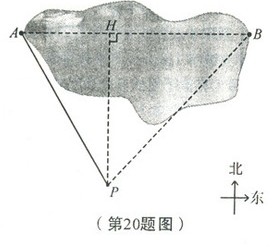 (2010陕西省)20 再一次测量活动中,同学们要测量某公园的码头A与他正东方向的亭子B之间的距离,如图他们选择了与码头A、亭子B在同一水平面上的点P在点P处测得码头A位于点P北偏西方向30°方向,亭子B位于点P北偏东43°方向;又测得P与码头A之间的距离为200米,请你运用以上数据求出A与B的距离。