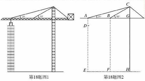 3.(2010,安徽芜湖)图1为已建设封顶的16层楼房和其塔吊图,图2为其示意图,吊臂AB与地面EH平行,测得A点到楼顶D点的距离为5m,每层楼高3.5m,AE、BF、CH都垂直于地面,EF=16m,求塔吊的高CH的长.