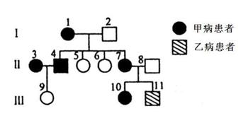 (8分)分析右图所示家族遗传系谱图,回答有关问题:(甲病:显性基因为A,隐性基因为a;乙病:显性基因为B,隐性基因b)