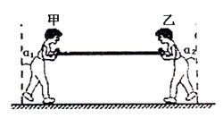 身高和质量完全相同的两人穿同样的鞋在同一水平地面上通过一轻杆进行顶牛比赛,企图迫使对方后退. 设甲、乙对杆的推力分别为F、F2. 甲、乙两人身体因前倾而偏离竖直方向的夹角分别为α1、α2,倾角越大,此刻人手和杆的端点位置就越低,如图所示,若甲获胜,则( )