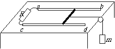 4.如图,在水平桌面上放置两条相距l的平行光滑导轨ab与cd,阻值为R的电阻与导轨的a、c端相连。质量为m、电阻不计的导体棒垂直于导轨放置并可沿导轨自由滑动。整个装置放于匀强磁场中,磁场的方向竖直向上,磁感应强度的大小为B。导体棒的中点系一不可伸长的轻绳,绳绕过固定在桌边的光滑轻滑轮后,与一个质量也为m的物块相连,绳处于拉直状态。现若从静止开始释放物块,用h表示物块下落的高度(物块不会触地),g表示重力加速度,其他电阻不计,则:( )