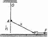 如图所示,有一不计质量的橡皮条,橡皮条产生的弹力与橡皮条的形变量成正比橡皮条的一端系在天花板上的O点,在O点的正下方A处有一光滑的钉子,钉子挡住橡皮条,橡皮条的自然长度为OA,当橡皮条处于竖直位置时,物体对地面有压力,用水平力F拉着物体在水平粗糙地面上向右缓慢运动过程中,物体所受地面的摩擦力为