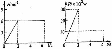 汽车是非常重要的交通工具,水平地面上的小汽车受到水平牵引力的作用而做直线运动,在0-6s内其速度与时间图象和发动机的功率与时间图象如图所示,在运动过程中汽车受到阻力大小保持不变则汽车的质量为(取g=10m/s2)(B)