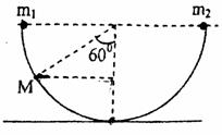 同时由轨道左、右最高点释放,二者碰后粘在一起向左运动,最高能上升到轨道M点,已知OM与竖直方向的夹角为60度,则两物体的质量之比
