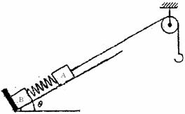 。A、B都处于静止状态,一条不可伸长的轻绳绕过轻滑轮,一端连物体A,另一端连一轻挂钩。开始时各段绳都处于伸直状态,A上方的一段绳沿斜面方向。现在挂钩上挂一质量为
