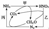 如图表示生态系统中碳循环和氮循环的一部分,甲、乙、