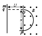 如图所示,一个静止的质量为m,带电量为+q的带电粒子(不计重力),经电压U加速后垂直进入磁感应强度为B的匀强磁场中,粒子打至P点,设OP=x,能正确反映x与U之间函数关系的x-U图如图中的( )