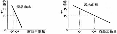 当两商品的价格P均从P1同幅下降到P2时,对于需求量Q的变化,下列判断中正确的是①两商品的需求量与价格同向变动 ②两商品的需求量与价格反向变动