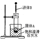 (10分)如图所示,把试管放人盛有25℃饱和石灰水的烧杯中,试管中开始放入固体试剂A,再在试管中用滴管滴入5 mL液体试剂B。可见到烧杯中饱和的澄清石灰水变浑浊。试回答下列问题: