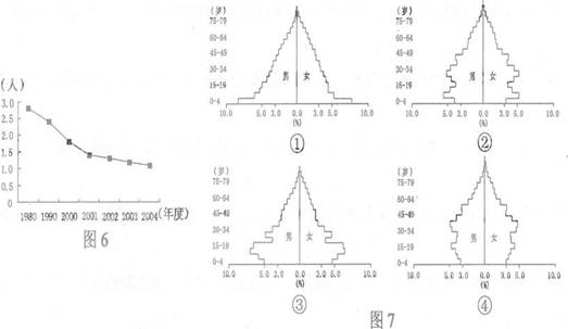 19.图6是某地区育龄妇女平均生育子女数变化曲线图。若图中所示变化趋势持续下去,最可能出现的是 ( )