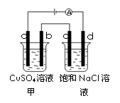 如图所示,a、b、c、d均为石墨电极,通电进行电解。
