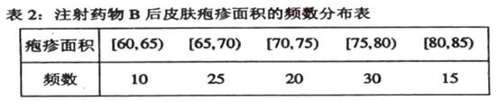(Ⅱ)下表1和表2分别是注射药物A和B后的试验结果.(疱疹面积单位:mm2)