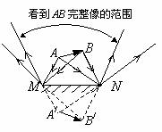 [例4]如图所示,用作图法确定人在镜前通过平面镜可看到AB完整像的范围。