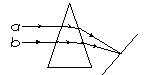 解:由图可知,b光线经过三棱镜后的偏折角较小,因此折射率较小,是红光。