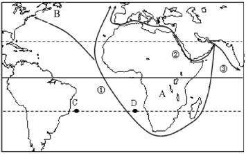 的 地域分异规律。南美洲C与D两地纬度相当,自然带却不同,这是受 的影响所致。
