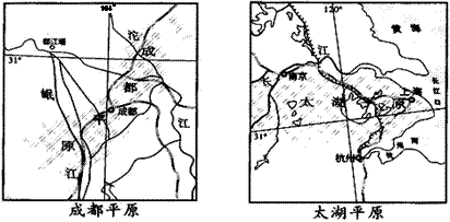 (四)读成都平原和太湖平原图回答。(20分)